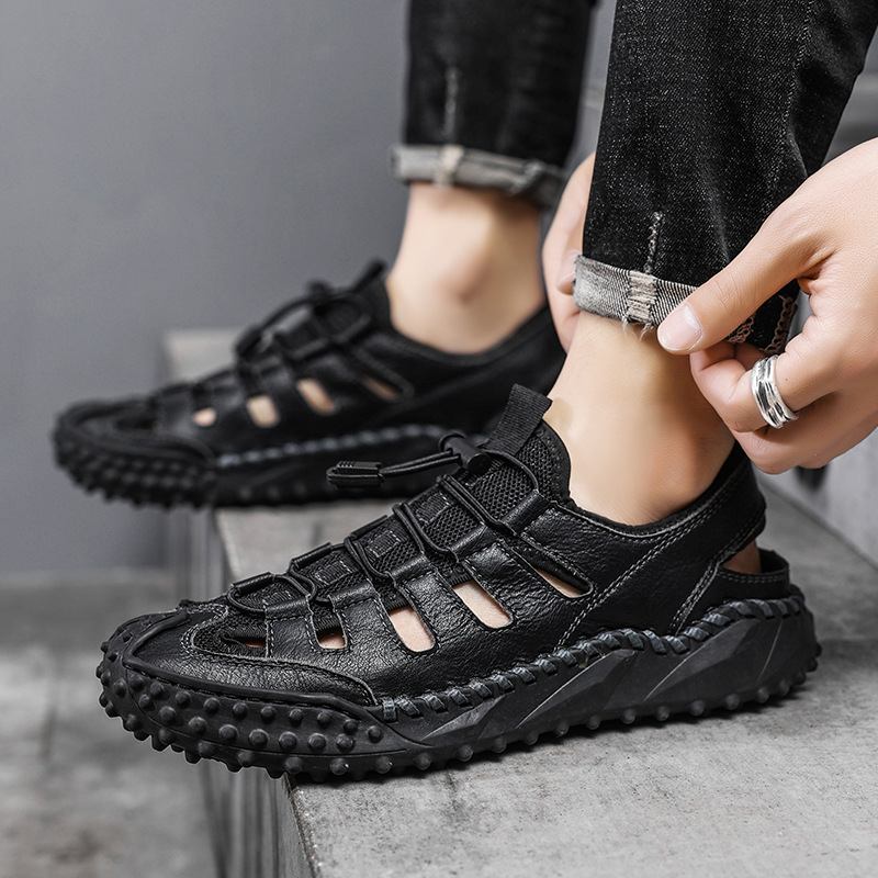 2023 Kesä Hengittävät Baotou Sandaalit Kevyet Suurikokoiset Ulkorantakengät Retro Trendikäs Rento Miesten Kengät Paksu Alaosa
