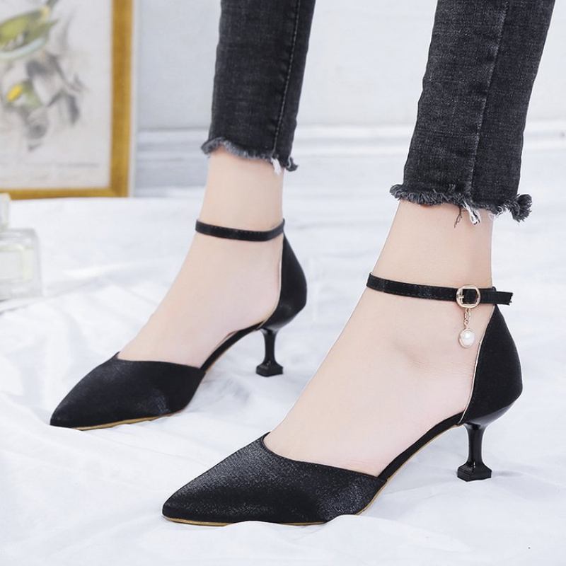 2023 Kevät Ja Kesä Uudet Teräväkärkiset Litteät Kengät Yksisanainen Solki Korkokengät Muoti Ontot Naisten