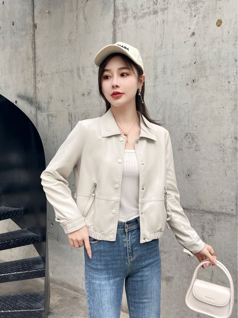 2023 Lyhennetty Naisten Nahkatakki Käänne Slim Fit Rento