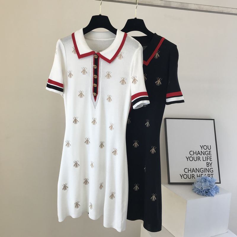 2023 Mehiläinen Brodeerattu Neulemekko Ohut Mekko Temperamentti Keskipitkä