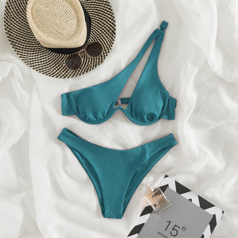 2023 Monivärinen Seksikäs Kolmio Naisten Uimapuku Yksivärinen Yksiolkainen Aluslangallinen Bikini-uimapuku