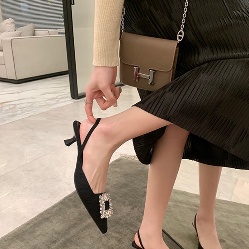 2023 Uudet Nelikulmaiset Solki Tekojalokivi Teräväkärkiset Matalasuiset Stilettosandaalit Naisille Kesäksi