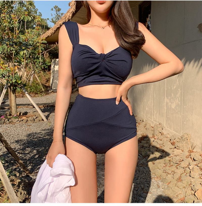 2023 Uusi Bubble Korkeavyötäröinen Yksivärinen Jaettu Kolmiouimapuku Naisille