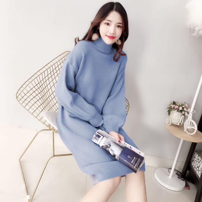 Candy Color Lantern Sleeve Villapaita Mekko Yksivärinen Muoti Pohja