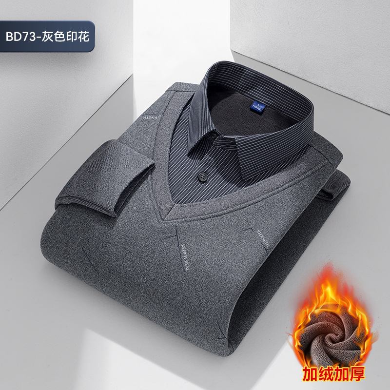 Fake Kaksiosainen Villapaita Miesten Paitakaulus Pitkähihainen Lämmin Jacquard-neule