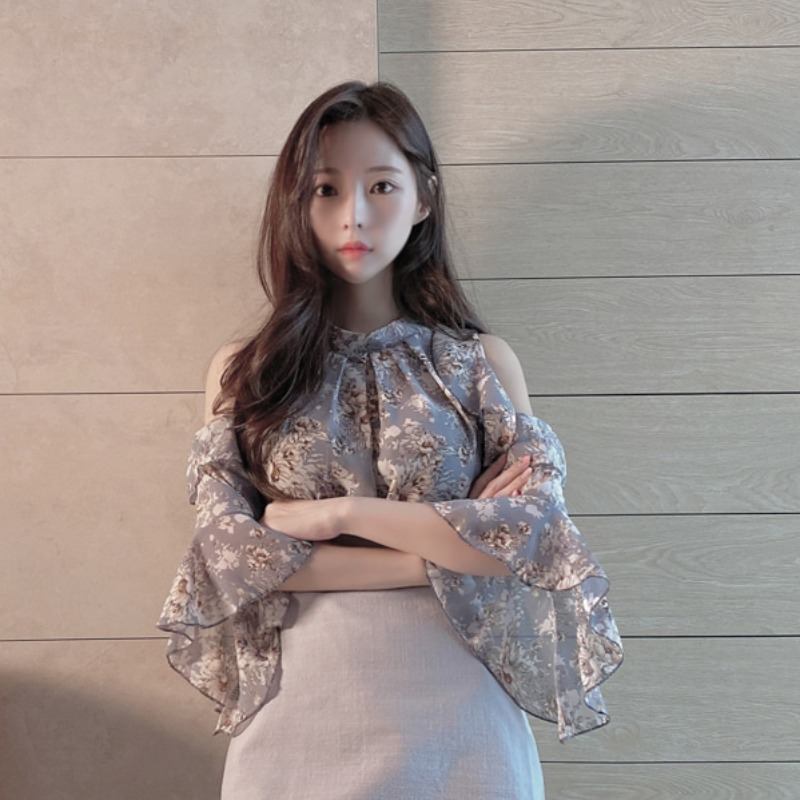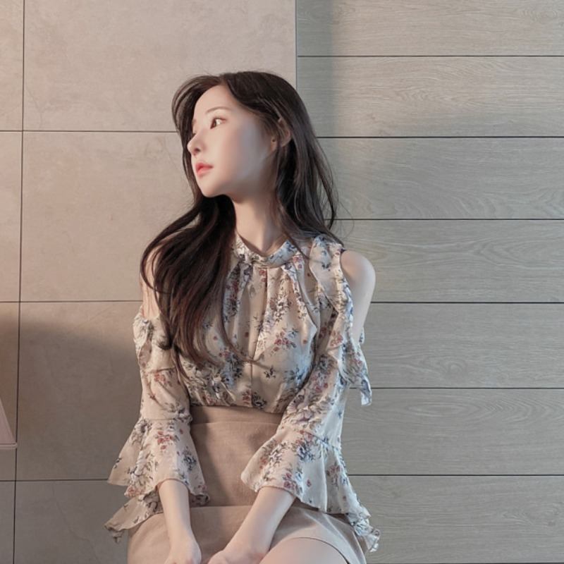 Floral Ladies Shirt Chiffon One Shoulder Sweet