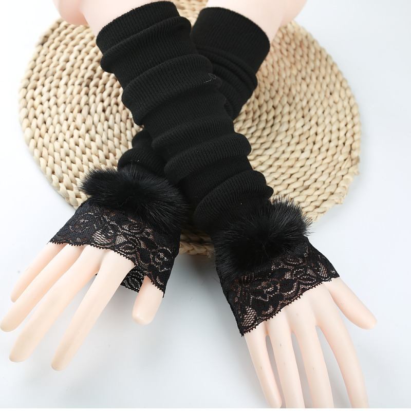 Kashmir Käsineet Syksyn Ja Talven Lämpimät Hihat Villa Musta Pitsi Käsivarsihihat Kyynärpään Yli Valehihat