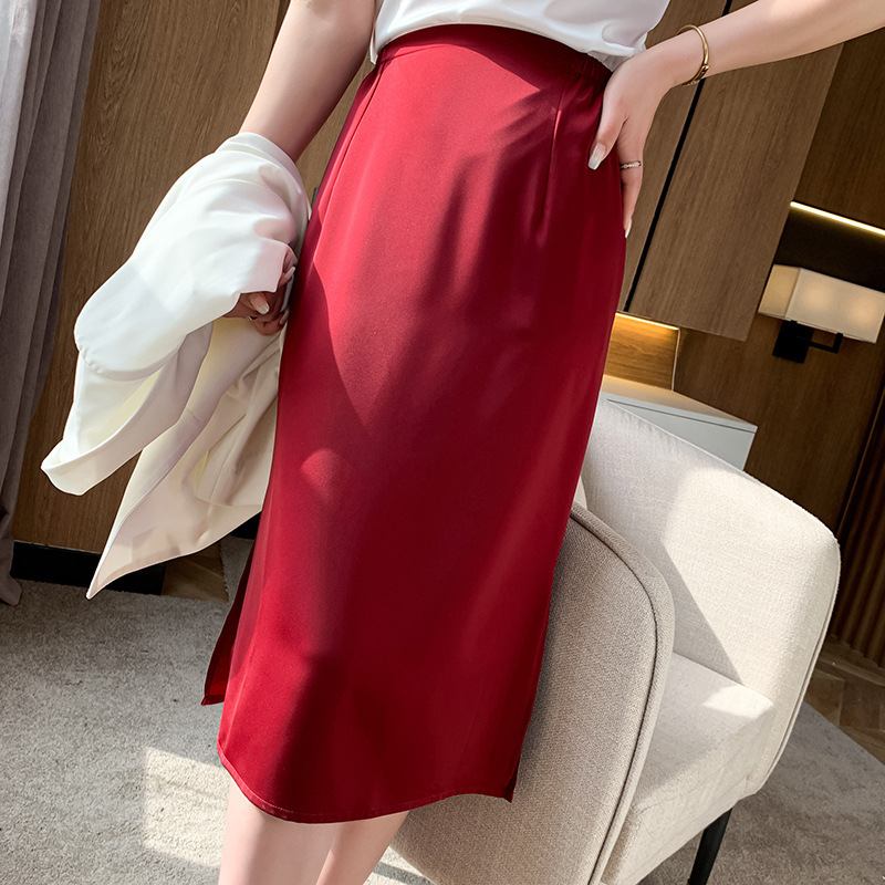 Kiinteä Satiinihame Korkea Vyötärö Keskipitkä Halkio