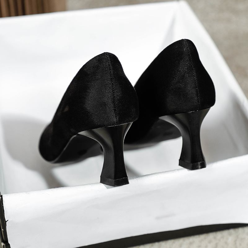 Korkokengät Uudet Mustat Mokkanahka Paksu Kantapää Matala Suu Teräväkärkinen Mekko Työkengät Naisten Litteät Kengät