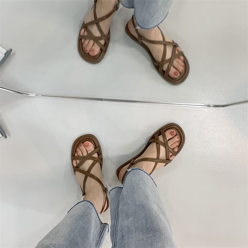 Litteät Mustat Sandaalit Naisten Kengät Uudet Kesäiset Retro Roomalaiset