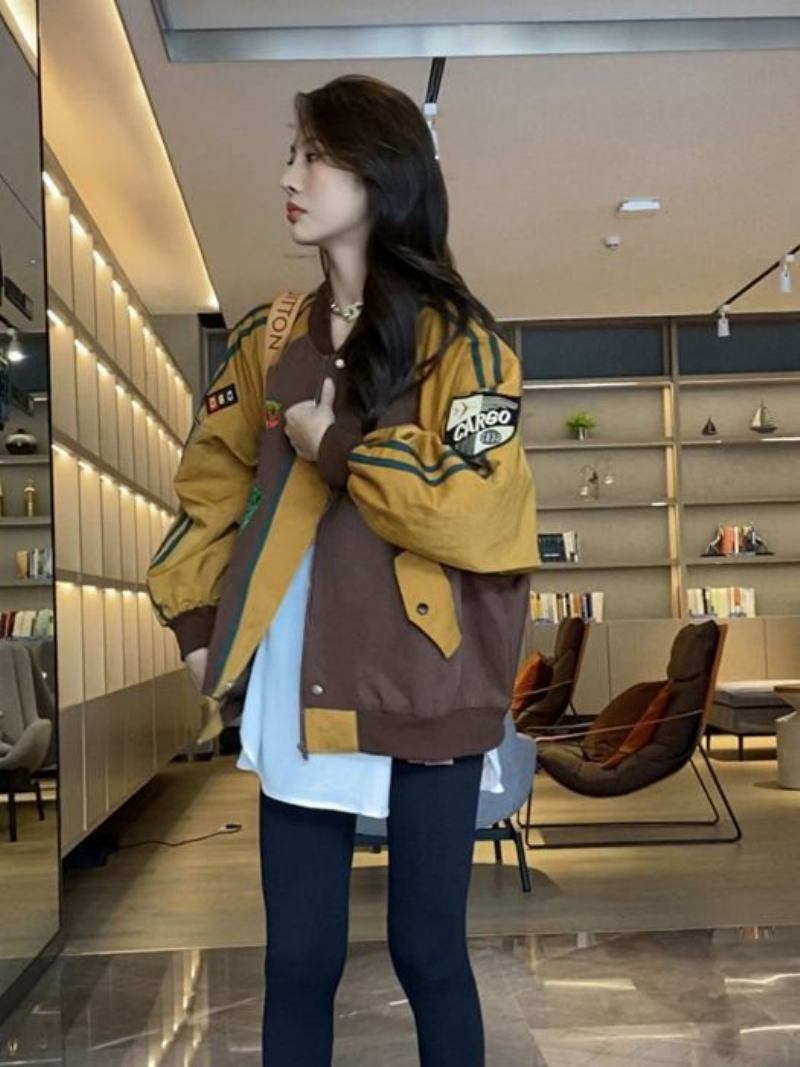 Löysä Naisten Takki Rento Vintage Color Block Aviator