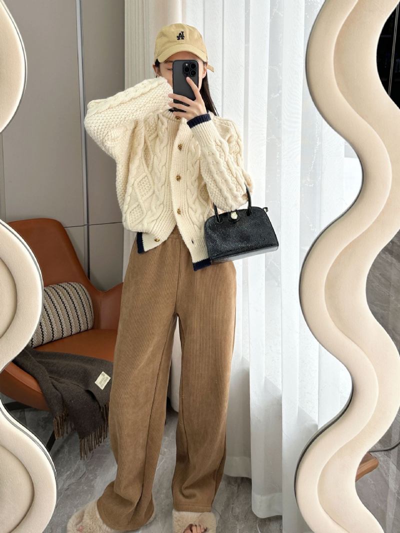 Miellyttävä Kermanvärinen Aprikoosi Kontrastivärinen Löysä Laiska Paksu Kierretty Neuletakki Neulepaita Naisille