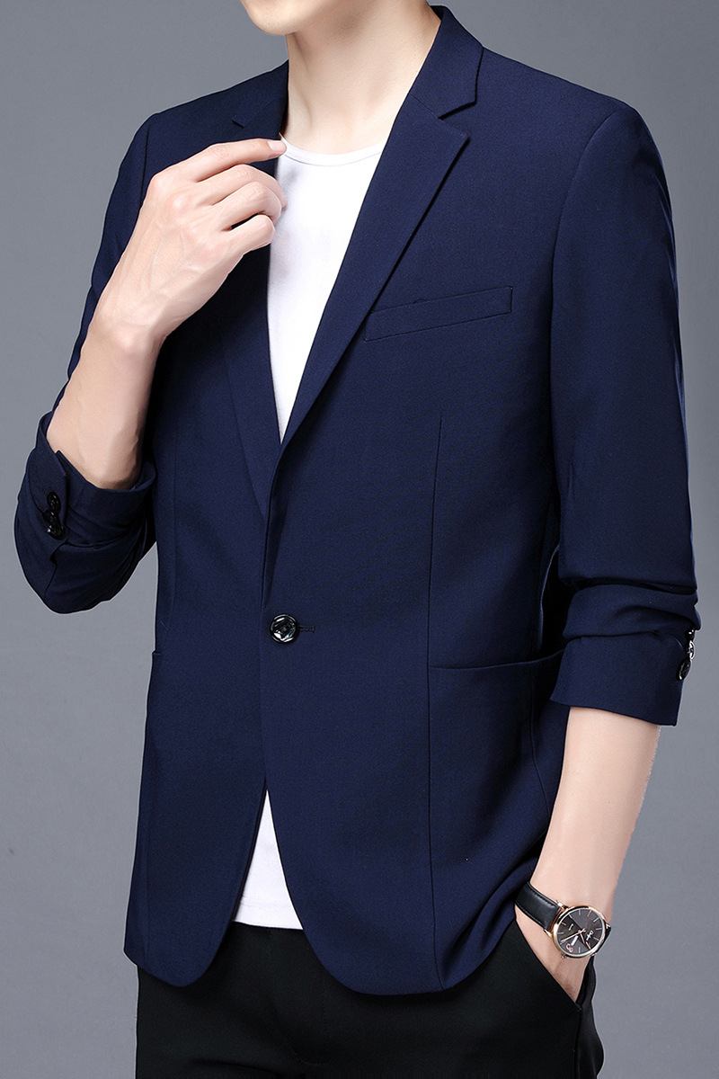 Miesten Blazers Rento Takki Slim Fit Tummansininen Yksirivinen Yksi Nappi