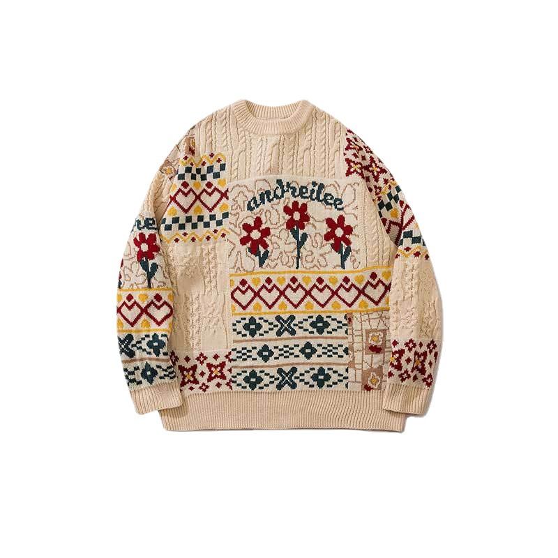 Miesten Neulepaita 2023 Retro Jacquard Rento Pyöreä Pääntie Neulottu Pariskunta