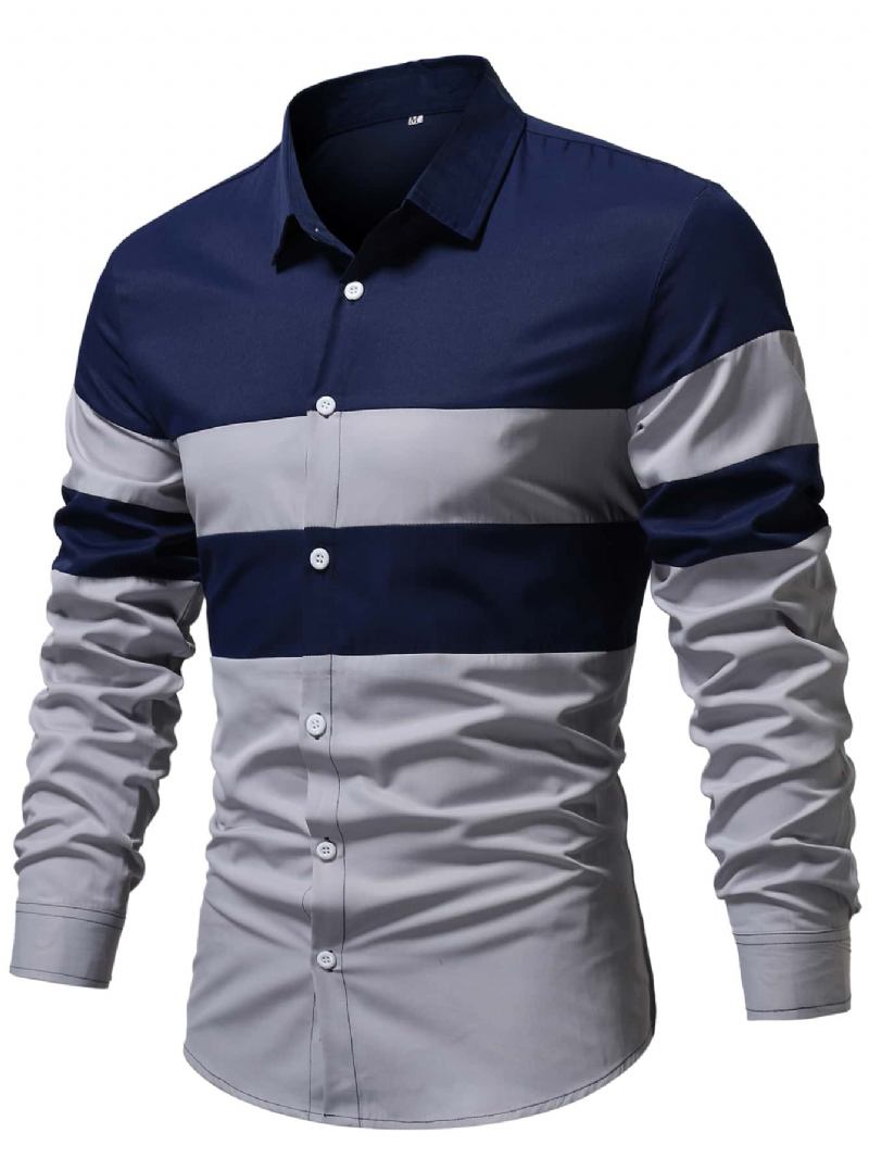 Miesten Pitkähihainen Paita Kaksivärinen Paneelipainike