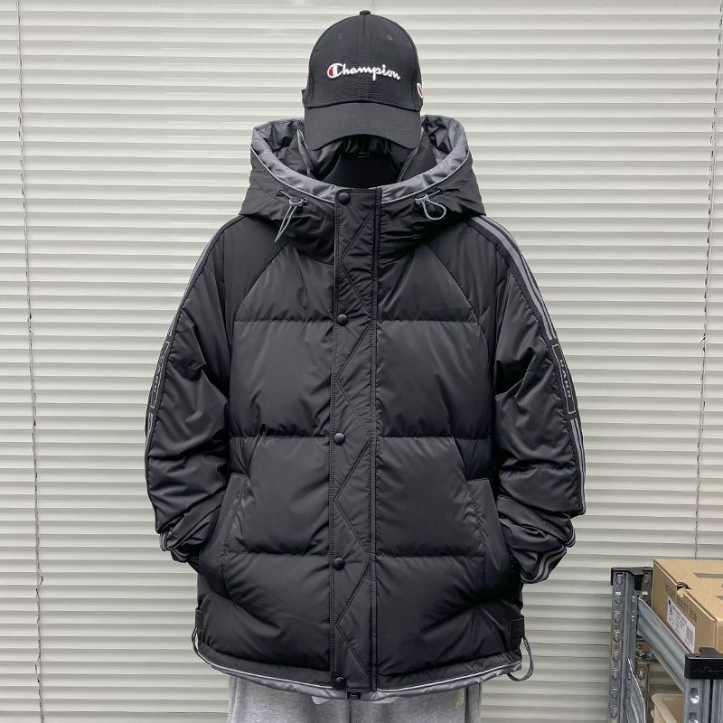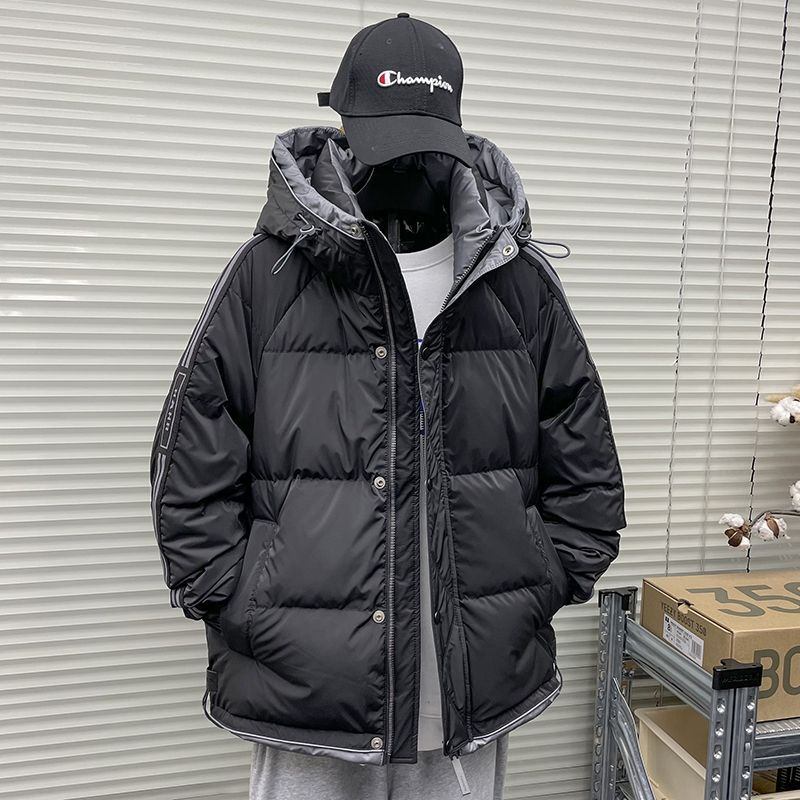 Miesten Puuvillatakki Löysä Hupullinen Trendiompelu Rento Muoti