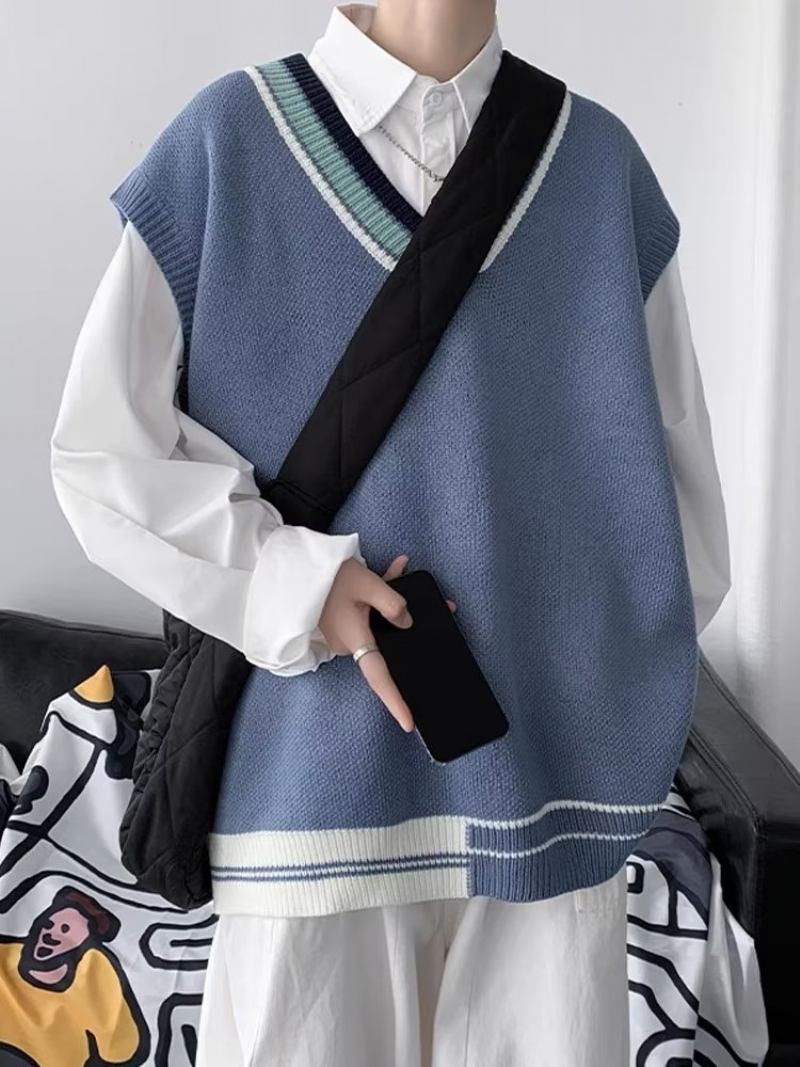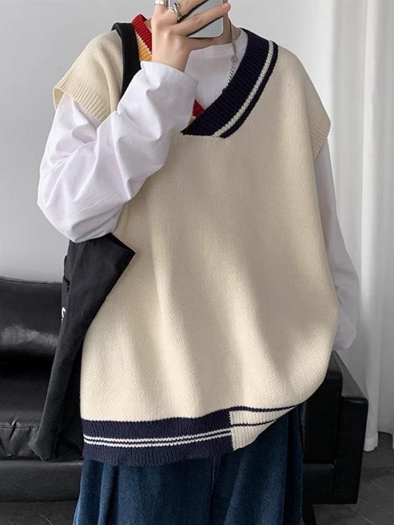 Miesten V-kaula-aukkoinen Pusero Trendikäs Hihaton Liivi Väriin Sopiva Neulottu Liiviliivi