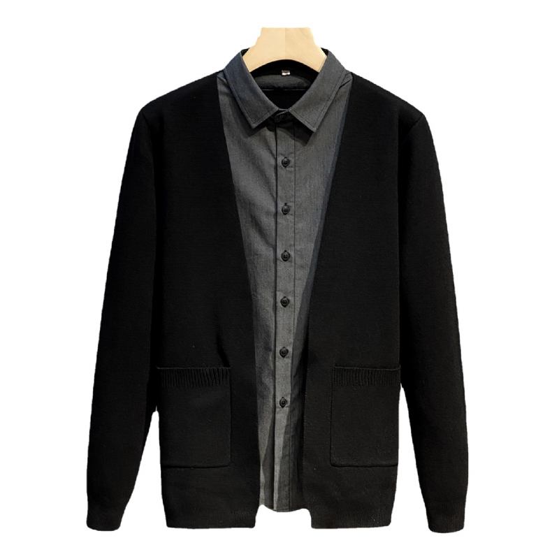 Miesten Väärennetty Kaksiosainen Neuletakki Muotipaitakaulus Takki Musta Villapaita