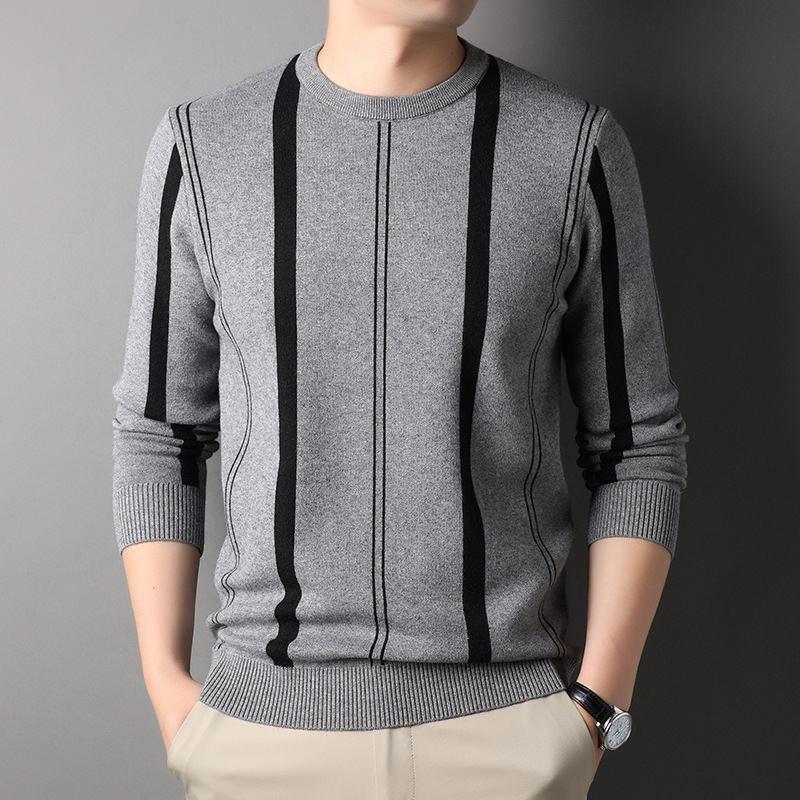 Miesten Villapaita Rento Raidallinen Väri Yhteensopiva Pyöreä Pääntie Neulottu Pusero Pitkähihainen Paita