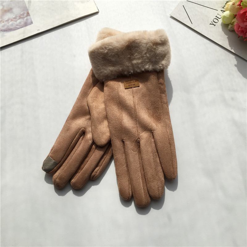 Mokkanahka Naisten Käsineet Yksirivinen Hiukset Suu Talvi Lämmin Ulkona Plus Sametti Opiskelija Sormi Kosketusnäyttö