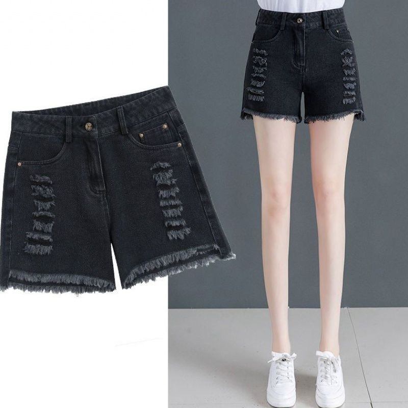 Musta Korkeavyötäröinen Farkkushortsit Naisten Löysät Rento Repäisty Ohut Osa