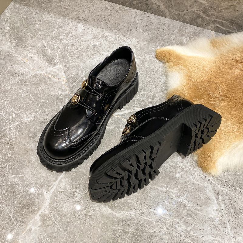 Nahkaa Käsin Veistetyt Paksupohjaiset Brogue Kengät Mekkokengät Naisten 2023 Kevät Uudet Kultasolki Loaferit Litteät
