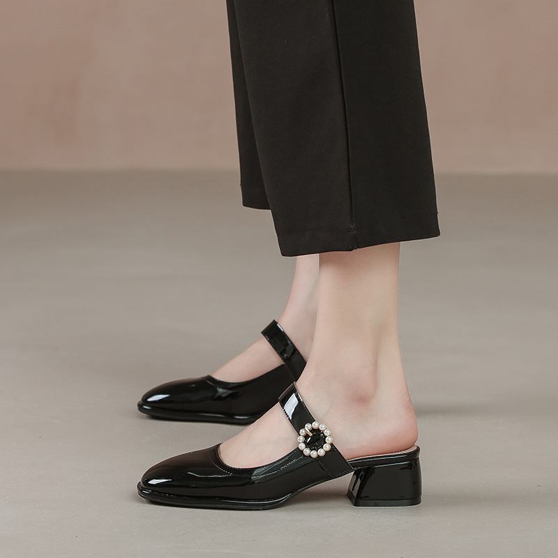 Nahkaiset Naisten Kengät 2023 Uudet Paksu Kantapää Baotou Sandaalit