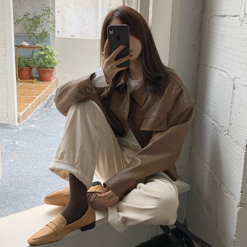 Naisten 2023 Löysä Nahkatakki Lyhyt Takki