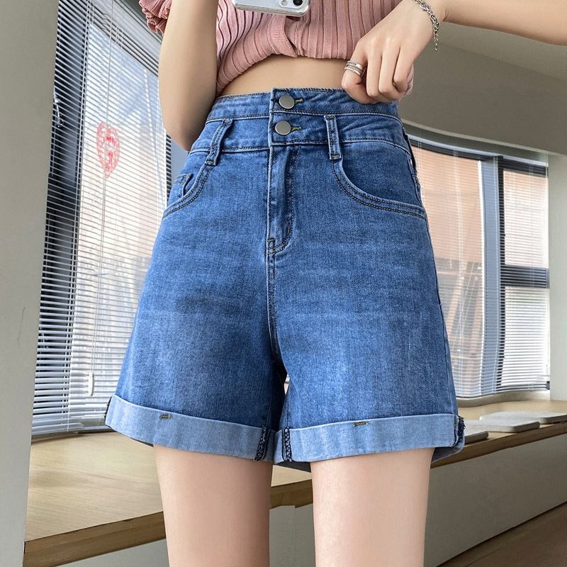 Naisten Farkkushortsit Korkea Vyötärö Ohut Suora