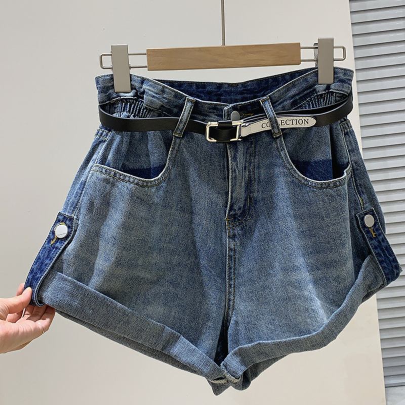 Naisten Farkkushortsit Korkeavyötäröinen Kesämekon Helma