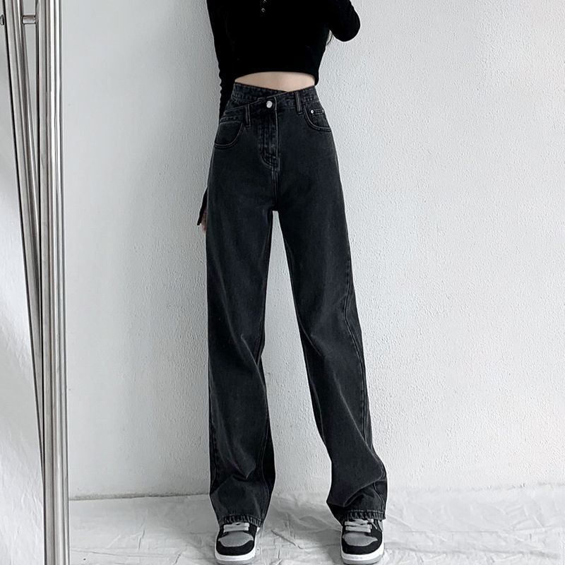Naisten Farkut Epäsäännöllinen Risti Vyötärö Korkea Suora Trendikäs
