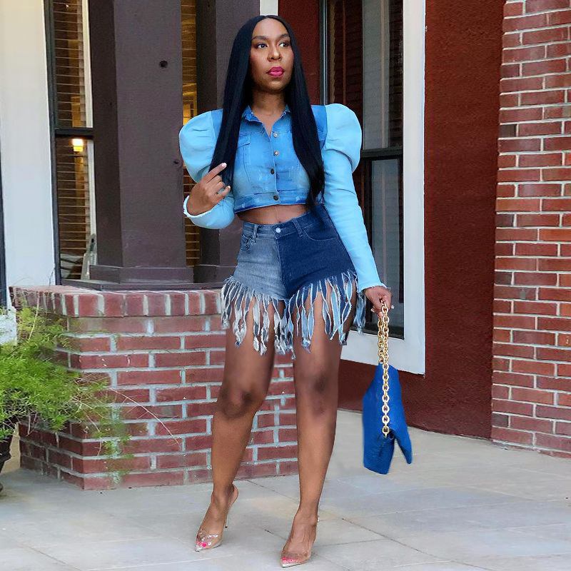 Naisten Farkut Väri Block Fringe Harjattu Shortsit Rento Suora Jalka
