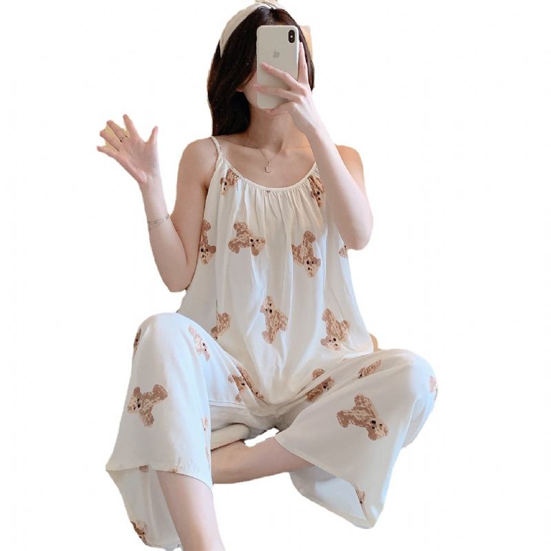 Naisten Henkselit Pyjamat Puuvillasilkki Kukkainen Seksikäs Kotiasusetti
