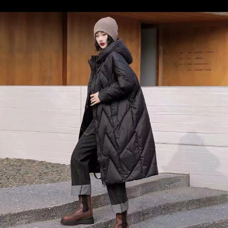 Naisten Hupullinen Untuvatakki Kirjallinen Löysä Paksu Retro Keskipitkä Polvipituinen