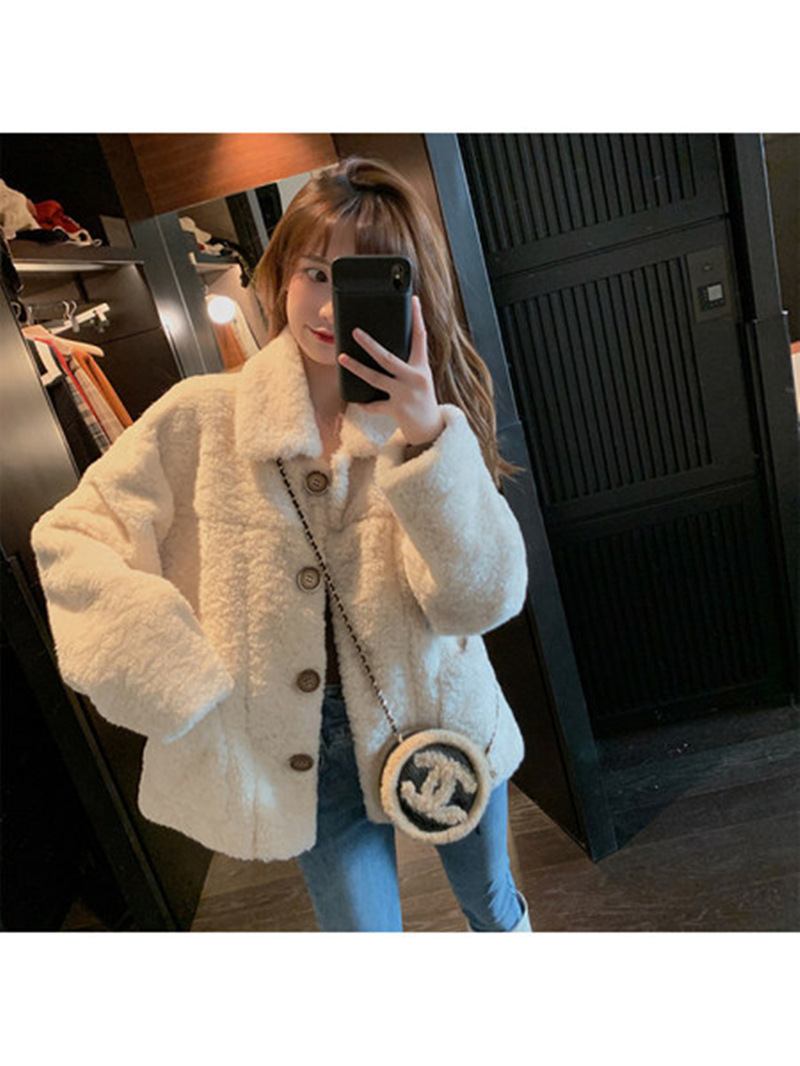 Naisten Karitsan Villatakki 2023 Löysä Pitkähihainen Paksunnettu Lyhyt