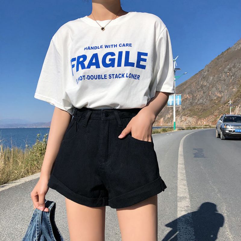 Naisten Korkeavyötäröiset Farkkushortsit Löysät Leveät Lahkeet