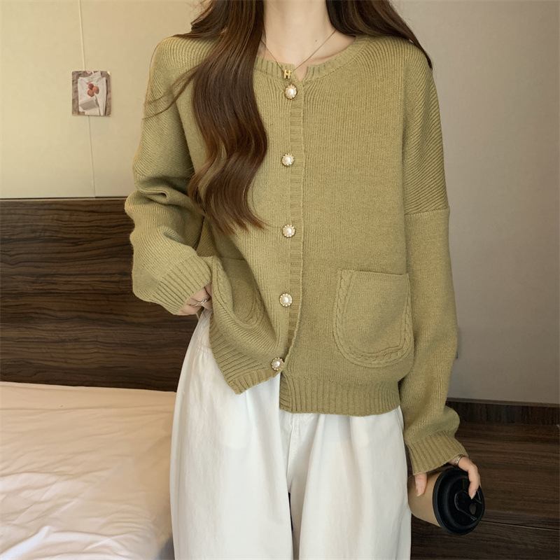 Naisten Lyhyt Neuletakki 2023 Kevät Ja Syksy Uusi Pyöreä Pääntie Väljä Yksivärinen Neulepusero Isokokoinen Villatakki