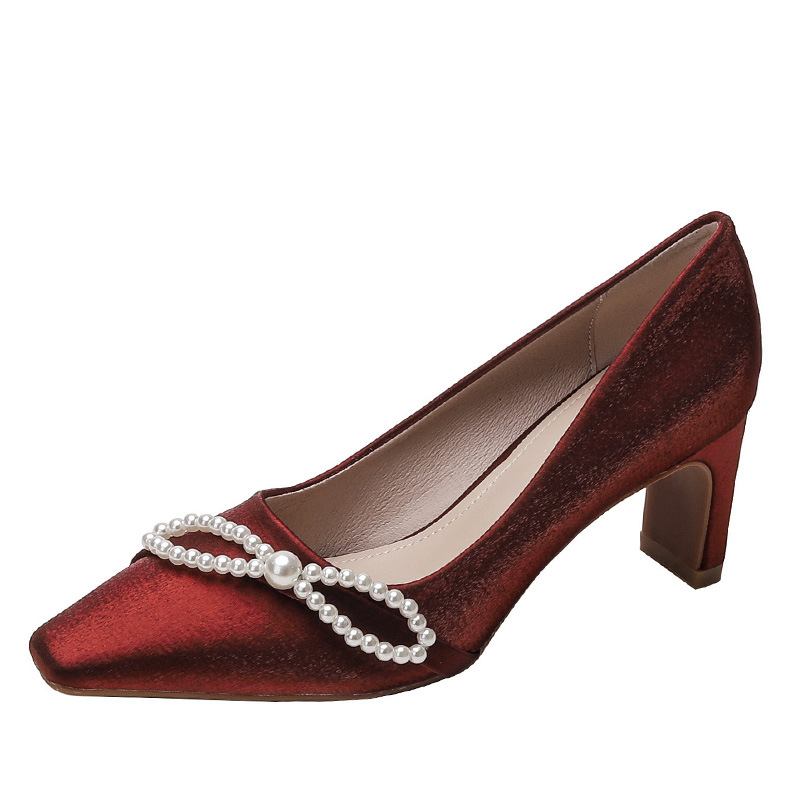 Naisten Muoti Korkeakorkokengät Neliömäiset Varpaat Paksut Korkokengät Trendikäs Puhdasväriset Helmirusetit Tasaiset Kengät Hääkengät