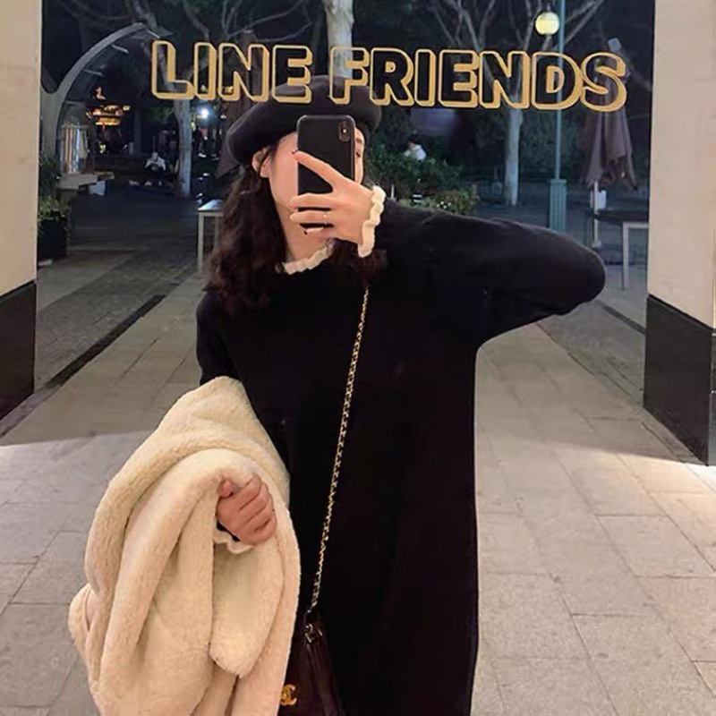 Naisten Musta Mekko 2023. Jossa Takkipusero Pitkähihainen Sisäpuoli