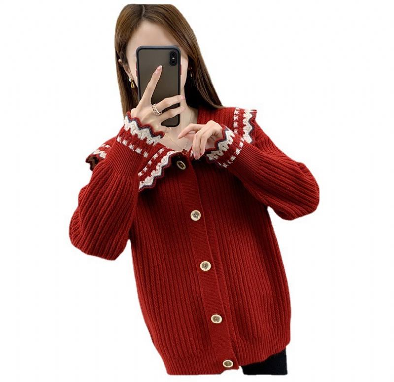 Naisten Neuletakki Kevät Ja Syksy Uusi Lyhytosainen Nukkekaulus Neulottu Syksyinen Tyyli