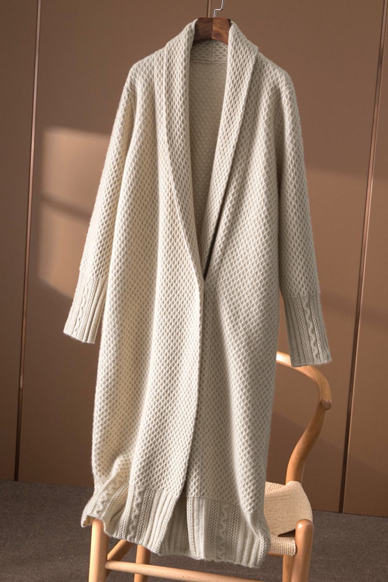 Naisten Neulottu Neuletakki Paksu Keskipitkä Polven Yli Takki Käänne Löysä
