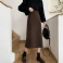 Naisten Villainen Ruskea Hame Keskipitkä Kieto Lantio Korkea Vyötärö Suora