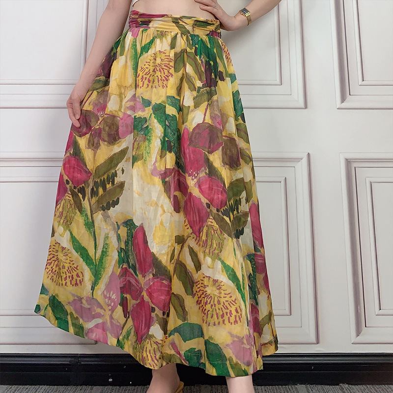 Painettu Silkkihame Löysä Korkea Vyötärö