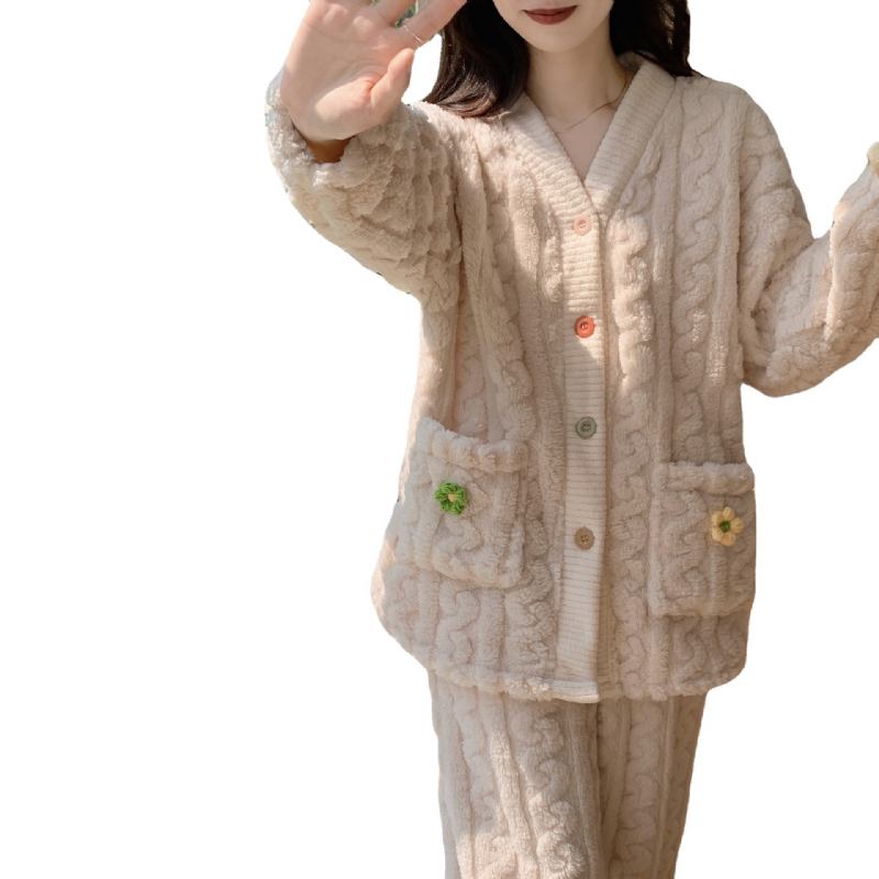 Paksutettu Korallifleece-pyjamat Naisen Suloinen Lämmin Kotivaatesarja