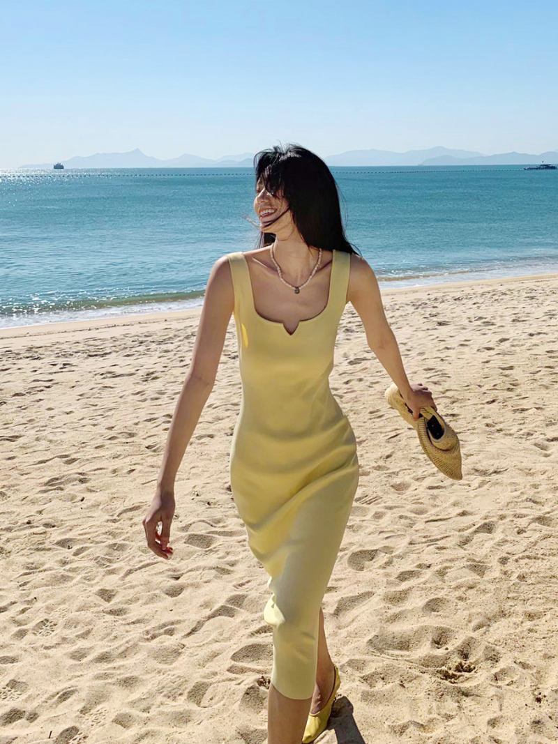 Pitkähihaiset Henkselit Slim Fit Pitkä Mekko