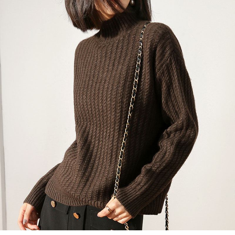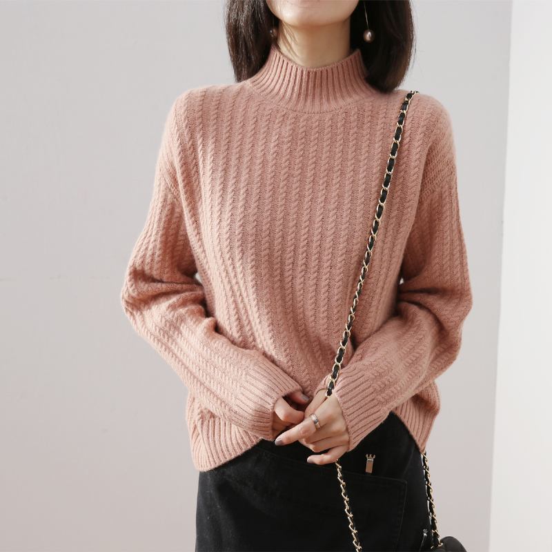 Puolikorkea Kaulus Paksunnettu Neule Naisten Syksyn Ja Talven Uusi Kashmir Neulepusero Löysä Kierre Neulottu Pohjavillatakki