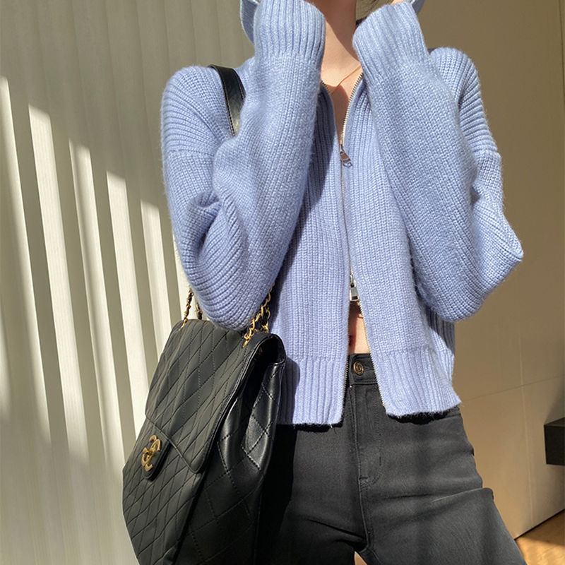 Pusero Neuletakki Naisten Lyhyet Topit Sisällä Jalusta Kaulus Vetoketju Neuleet Slim Fit