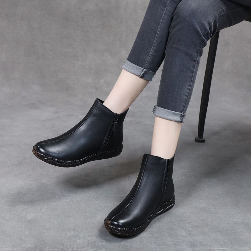 Puuvillakengät Naisten Nahka Plus Sametti Lyhyet Saappaat Talvi Uudet Lämpimät Äidin Kengät Litteät Luistamattomat Mukavat Puuvillasaappaat Naisille