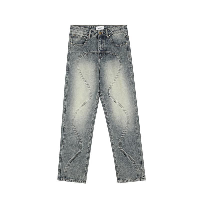 Retro Kolmiulotteiset Suorat Farkut Miesten Löysät Keskikorkeudet
