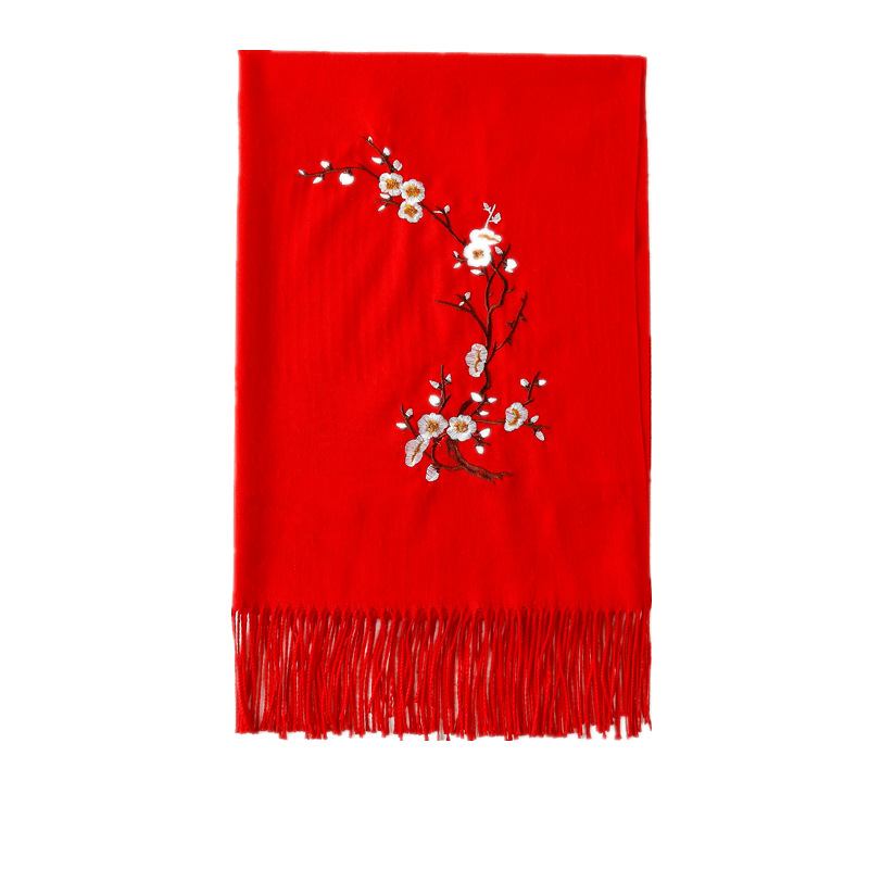 Rui Bei Kirjailtu Huivi Naisten Talvinen Paksu Yksivärinen Lämmin Tupsuinen Kashmir Huivihuivi